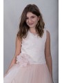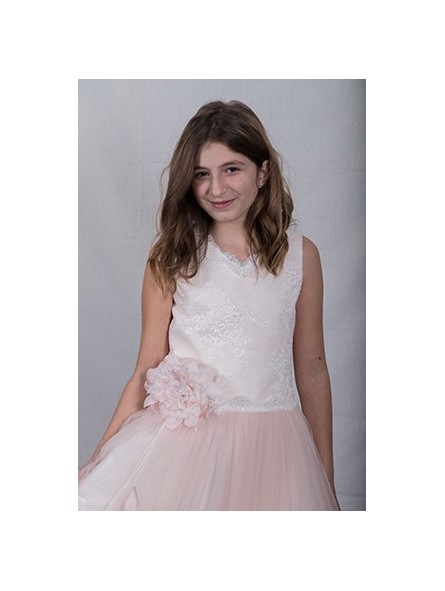Robe de cérémonie avec jupes tulle, dentelle et col V avec lacets