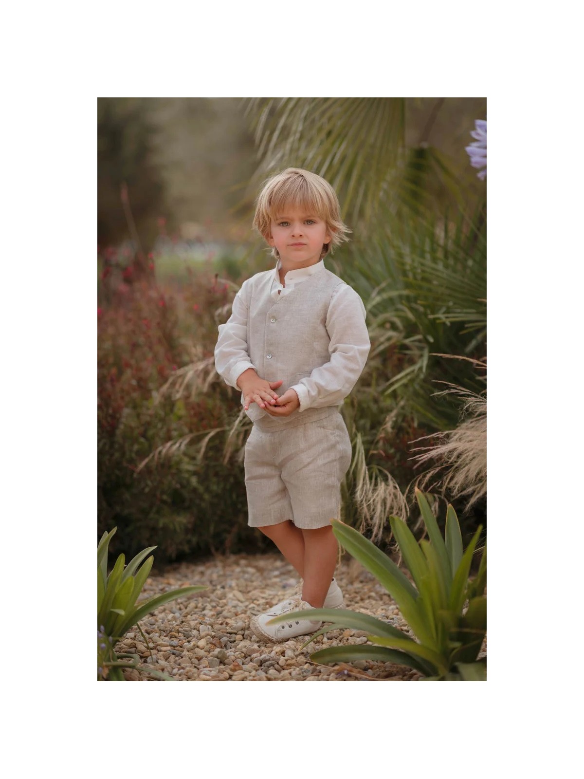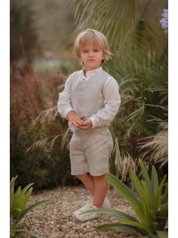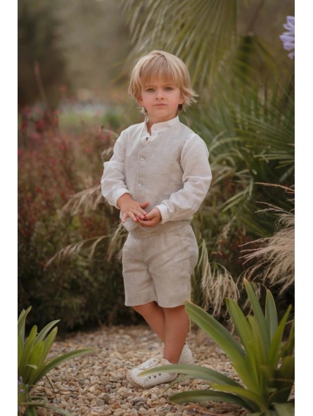 Completo 3 pezzi: gilet, pantaloncino e camicia alla coreana